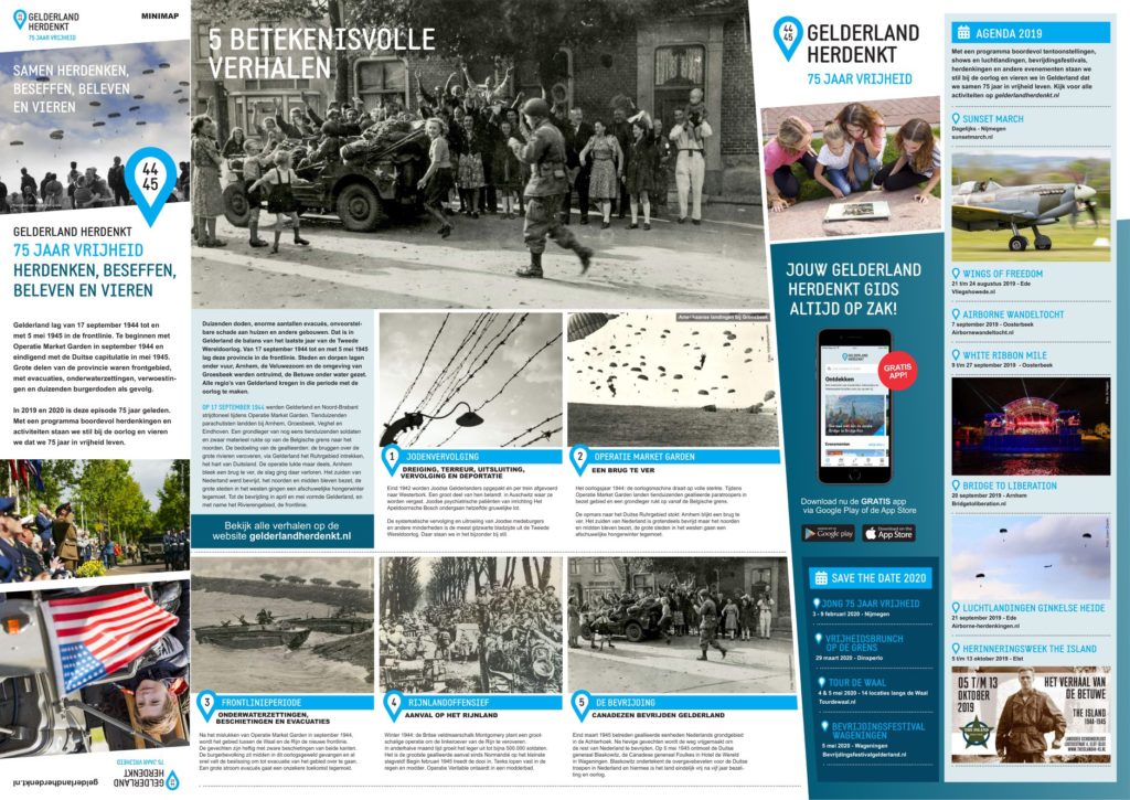 In 2019 en 2020 is deze episode 75 jaar geleden. In heel Gelderland wordt gewerkt aan projecten om stil te staan bij de gebeurtenissen van toen en om de Bevrijding en 75 jaar vrijheid te vieren. Het is aan huidige en nieuwe generaties om lessen te trekken uit het verleden, te beseffen dat vrede en vrijheid niet vanzelfsprekend zijn.
